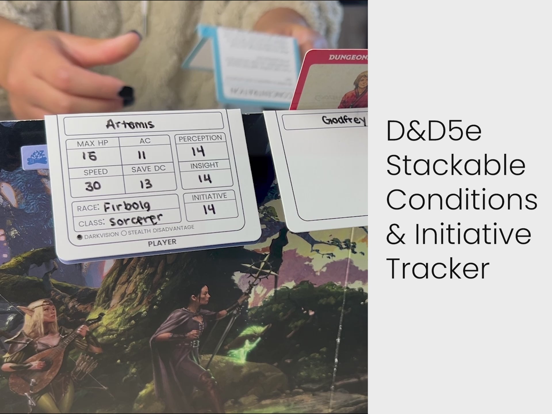 This Dungeons & Dragons 5E Initiative System card set is designed to streamline combat. Each card is pre-scored for easy folding, allowing them to fit over a DM screen. And they are all wet erase for reuse and easy cleaning. The set includes two types of cards: Role and Condition.